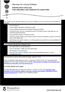 Hampshire Council – Services for Young Children, 2 Year olds help with childcare and education